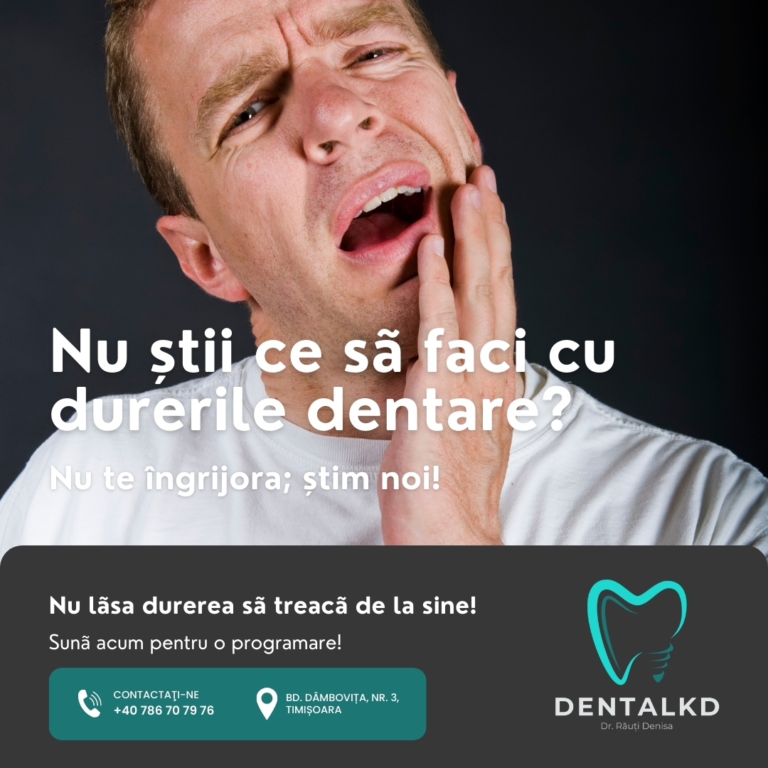 Indiferent care este problema dentară cu care te confrunți, te asigurăm cã vom găsi împreunã cea mai bunã și convenabilã soluție. Zâmbetul tău este prioritatea noastrã și vom face totul pentru ca tu sã crezi și așteptările tale sã devină realitate!